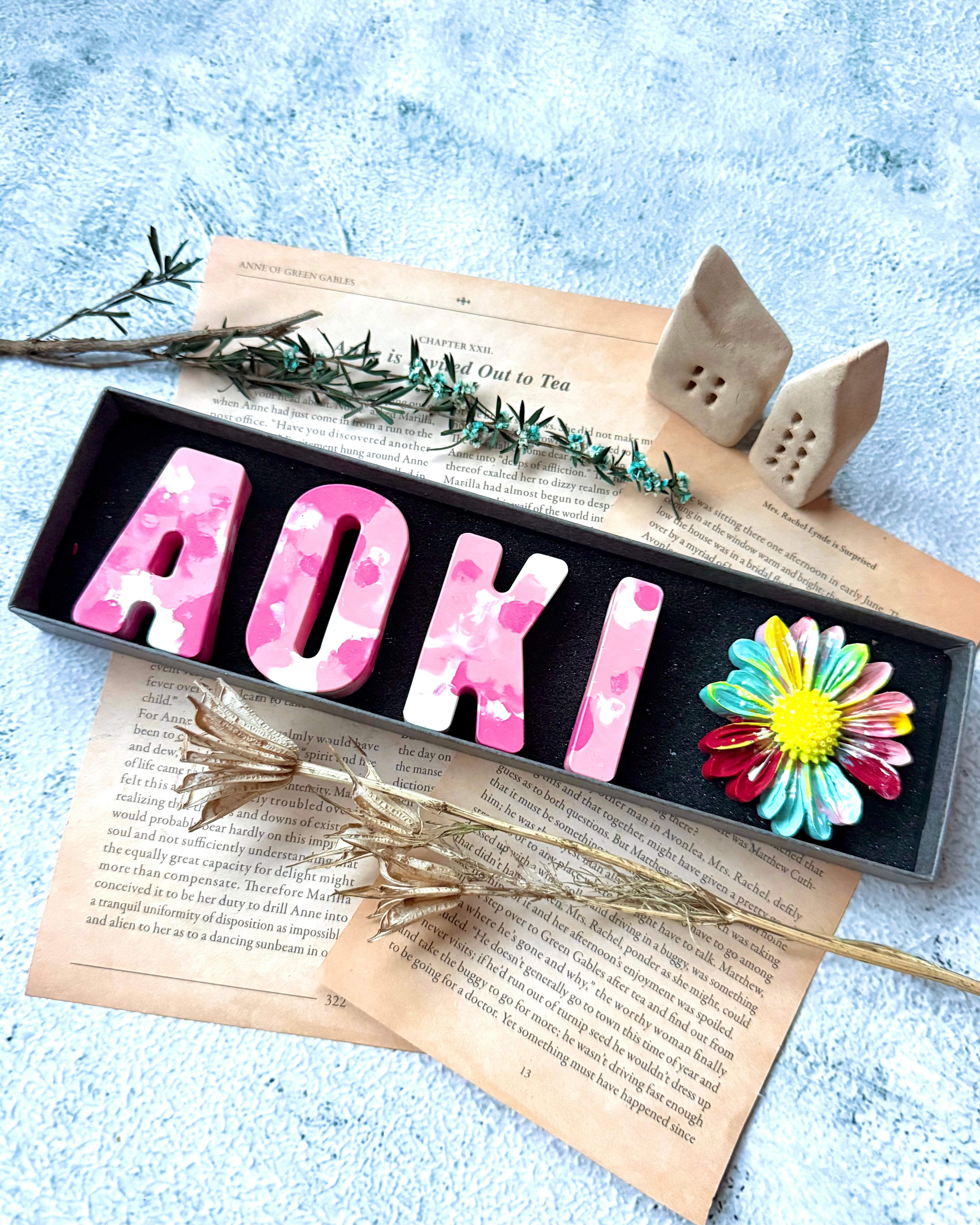 2〜4文字の場合はモチーフクレヨンを追加し5文字になるように組み合わせます。(2文字の場合は3つ、3文字の場合は2つ、4文字の場合は1つ)